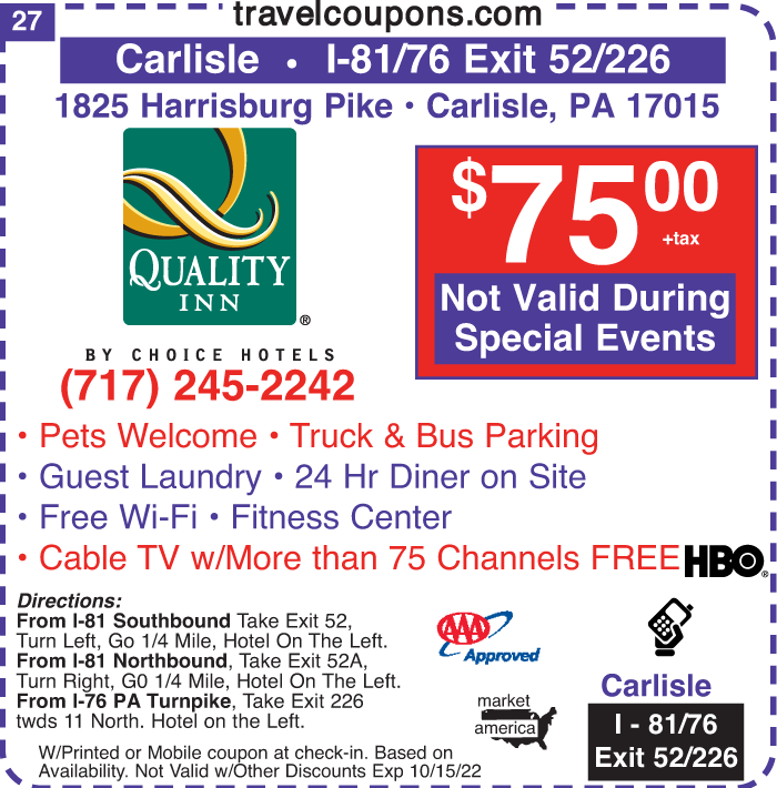 Quality Inn 1825 Harrisburg Pike Carlisle Pa 17015 Exit 52 Interstate I 81 In Pennsylvania Iexit