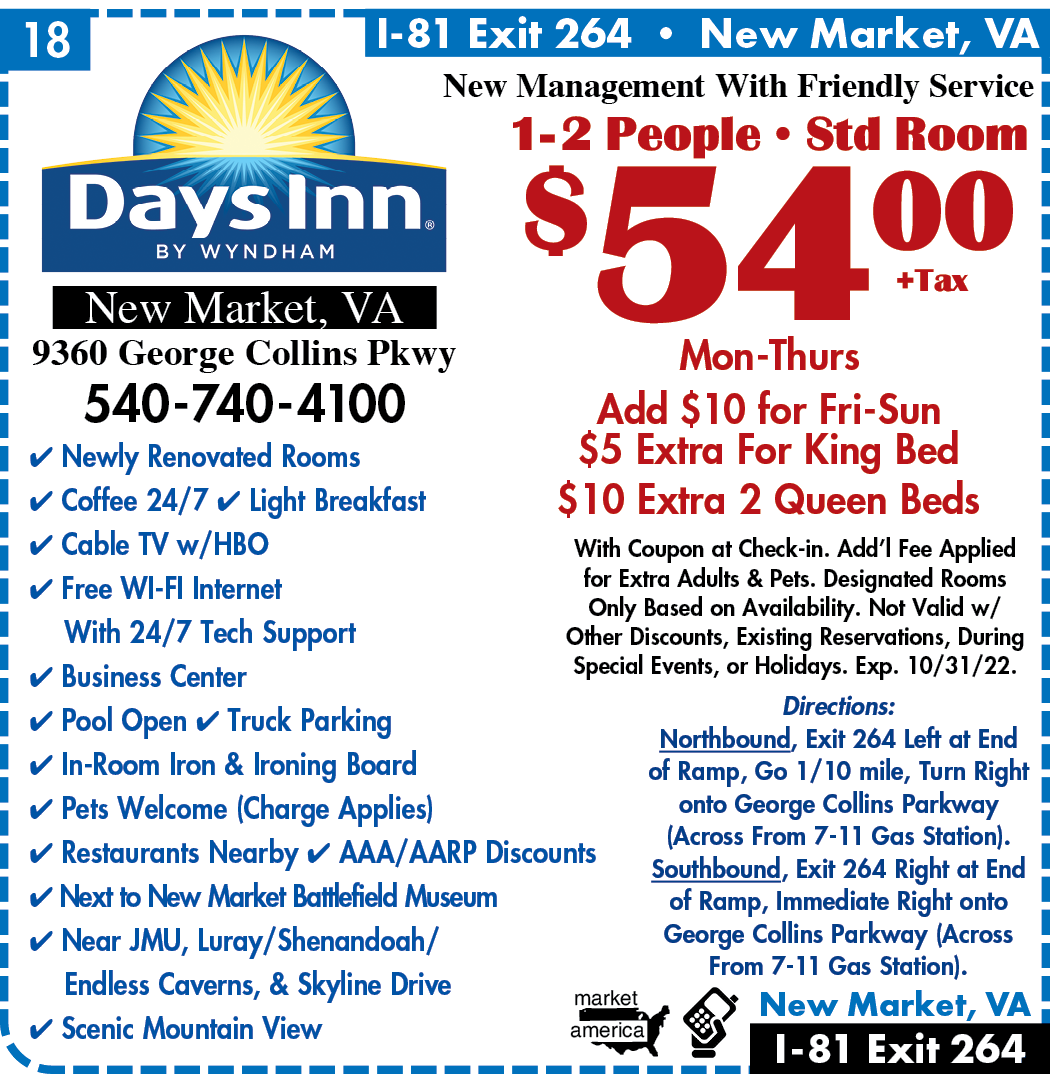 Days Inn 9360 George Collins Pkwy New Market Va 22844 Exit 264 Interstate I 81 In Virginia Iexit